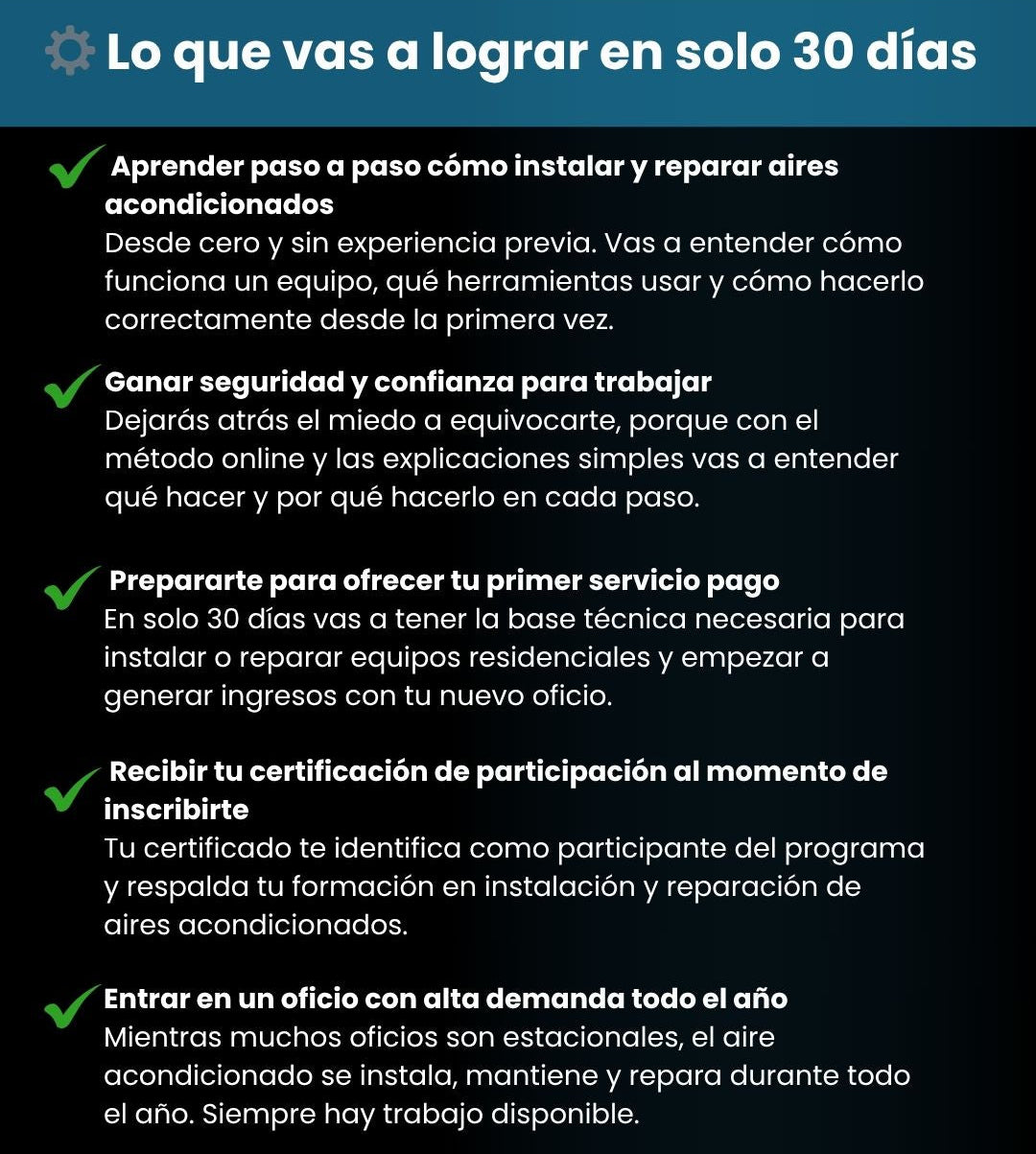 No. Este curso está diseñado desde cero, paso a paso, para que cualquier persona aprenda a instalar y reparar aires acondicionados sin conocimientos previos.