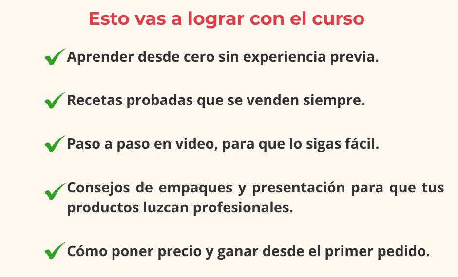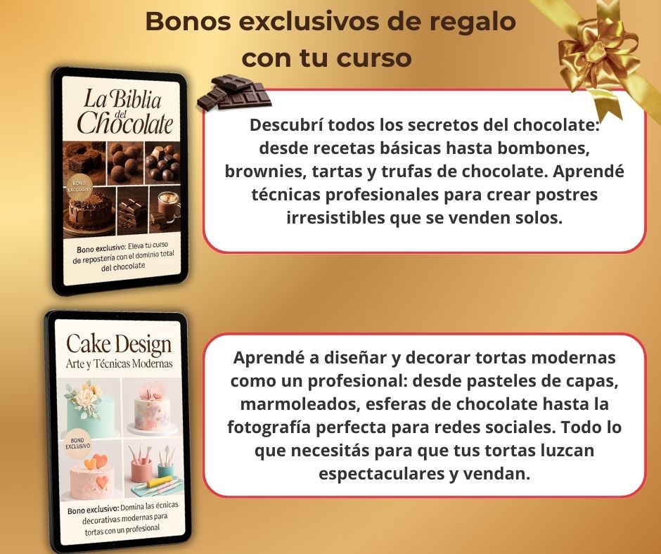 Si el curso no es para vos, pedís la devolución y listo. Sin riesgos, sin complicaciones. Queremos que pruebes el curso con total confianza y descubras todo lo que podés lograr con él 🎂 💕