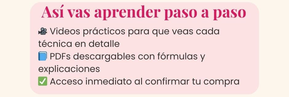 Incluye PDFs completos y videos explicativos paso a paso, además de los bonos que correspondan según cada curso.